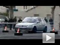 超强悍的标致205在一片满是桩桶的空地上玩儿绕桩,动作十分连贯,甩尾掉头的动作做......
