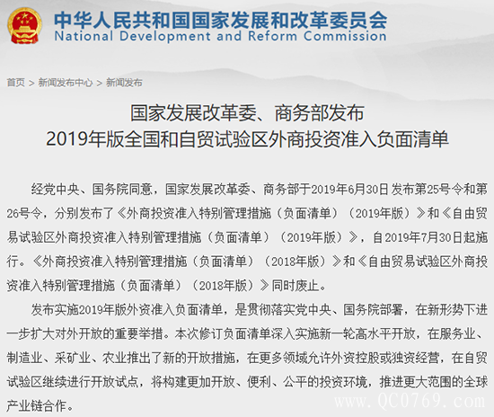 6月30日,国家发展改革委、商务部连续发布了第25号令、第26号令和第27号令,分别发布了《外商投资准入特别管理措施(负面清单)(2019年版)》(以下简称《外资准入负面清单》)、《自由贸易试验区外商投资准入特别管理措施(负面清单)(2019年版)》(以下简称《自贸试验区负面清单》)以及《鼓励外商投资产业目录(2019年版)》(以下简称《外商投资目录》)。