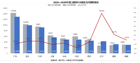4月,受全球新冠疫情进一步加剧影响,我国汽车进口同比降幅大幅扩大至62.5%,仅为3.9万辆。而伴随国内疫情防控进入常态化,汽车市场逐渐回暖,进口车销售呈现企稳态势,4月销量达到9.2万辆,同比降幅大幅收窄至1.7%,基本达到去年同期水平。