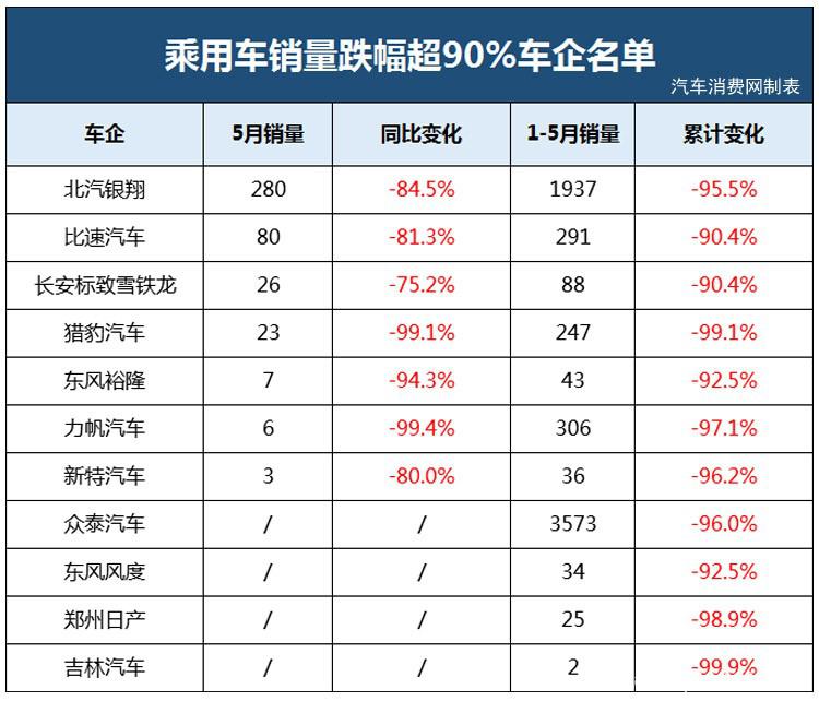 销量狂跌90%多,这十几家车企快撑不住了!